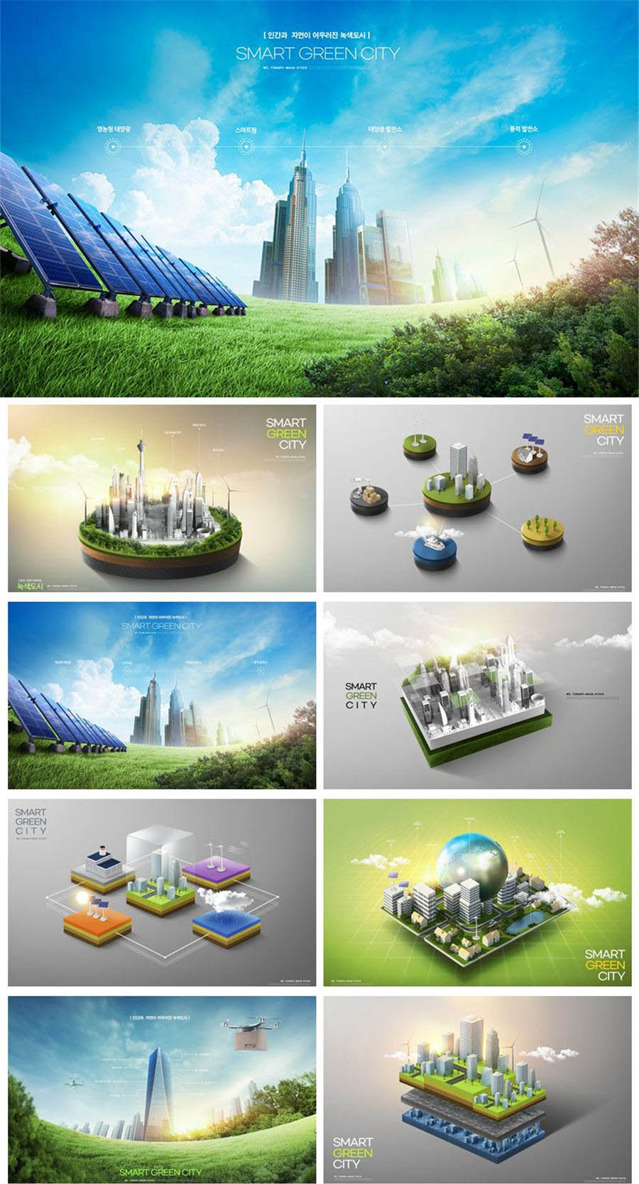 城市新能源工厂绿色环保场景合成PSD创意元素海报模板素材设计