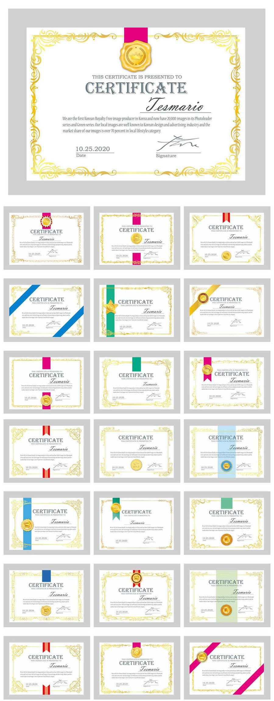 20款荣誉证书奖状模板AI素材