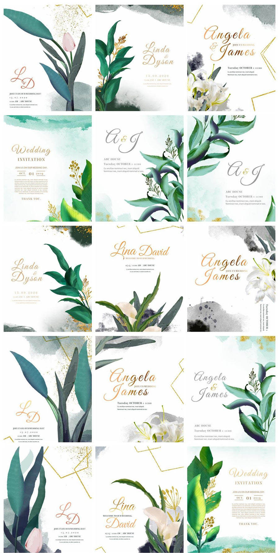 15款水彩植物海报信纸单页PSD素材