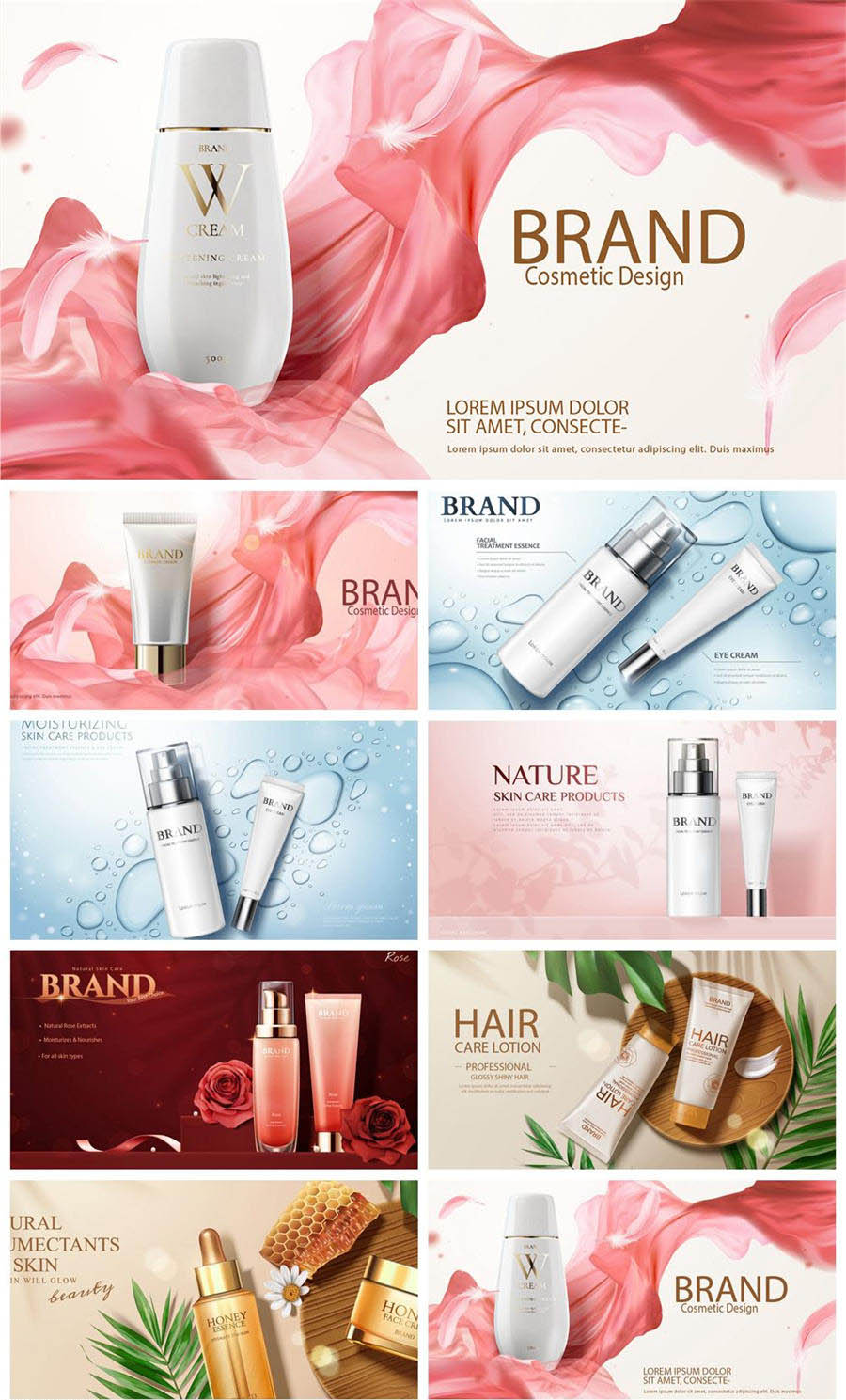 保养品化妆品护肤品植物精华水滴飘带创意元素海报模板AI素材设计
