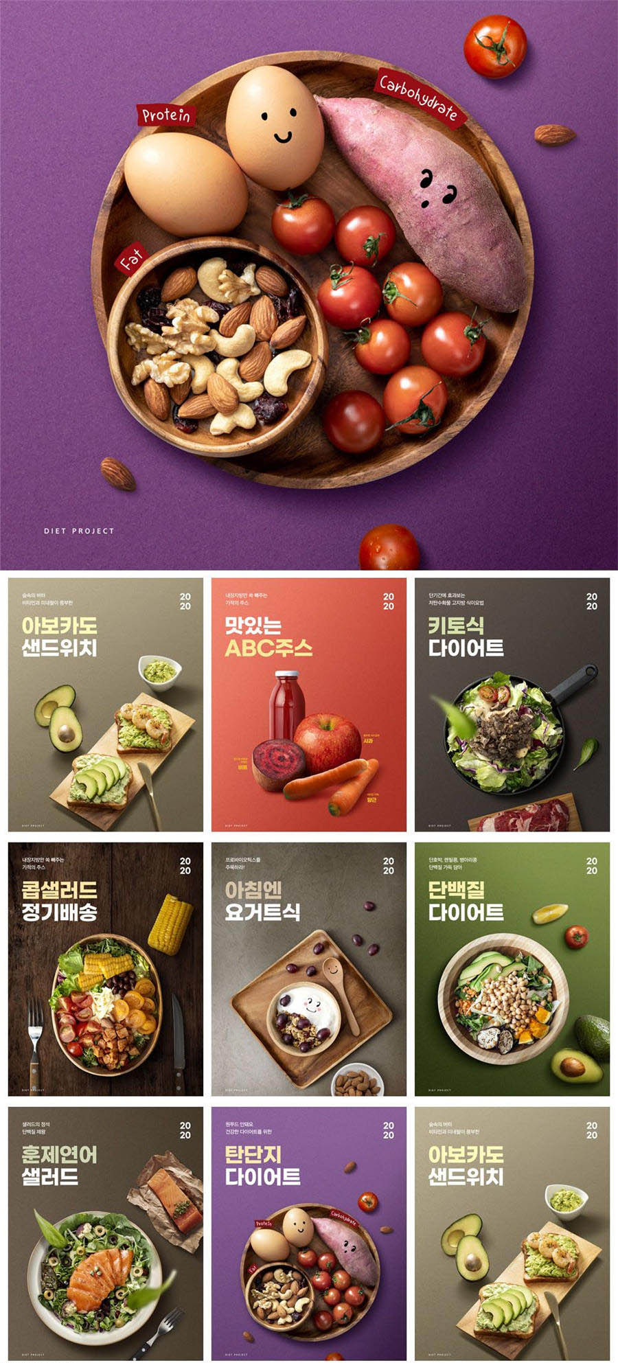 餐饮美食轻食简餐沙拉蔬菜牛油果创意元素海报PSD模板素材设计