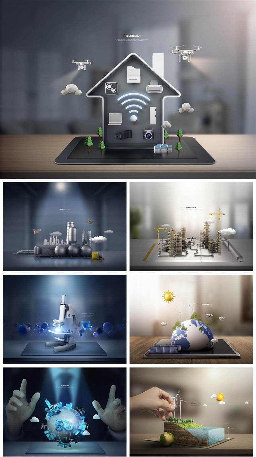 7款工业工厂医疗物流智能家居新能源-2PSD素材