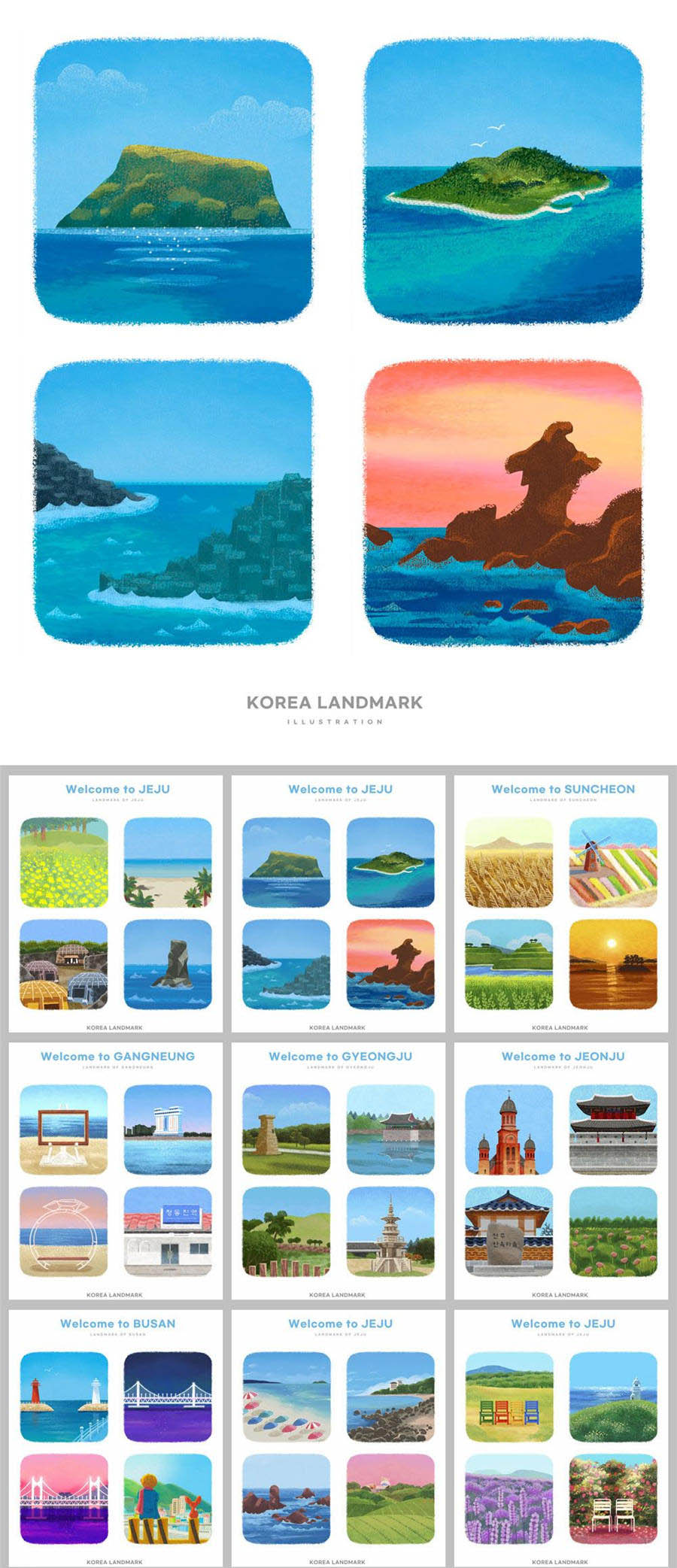 旅游旅行景点风景沙滩海边森林插画创意元素海报模板素材PSD设计