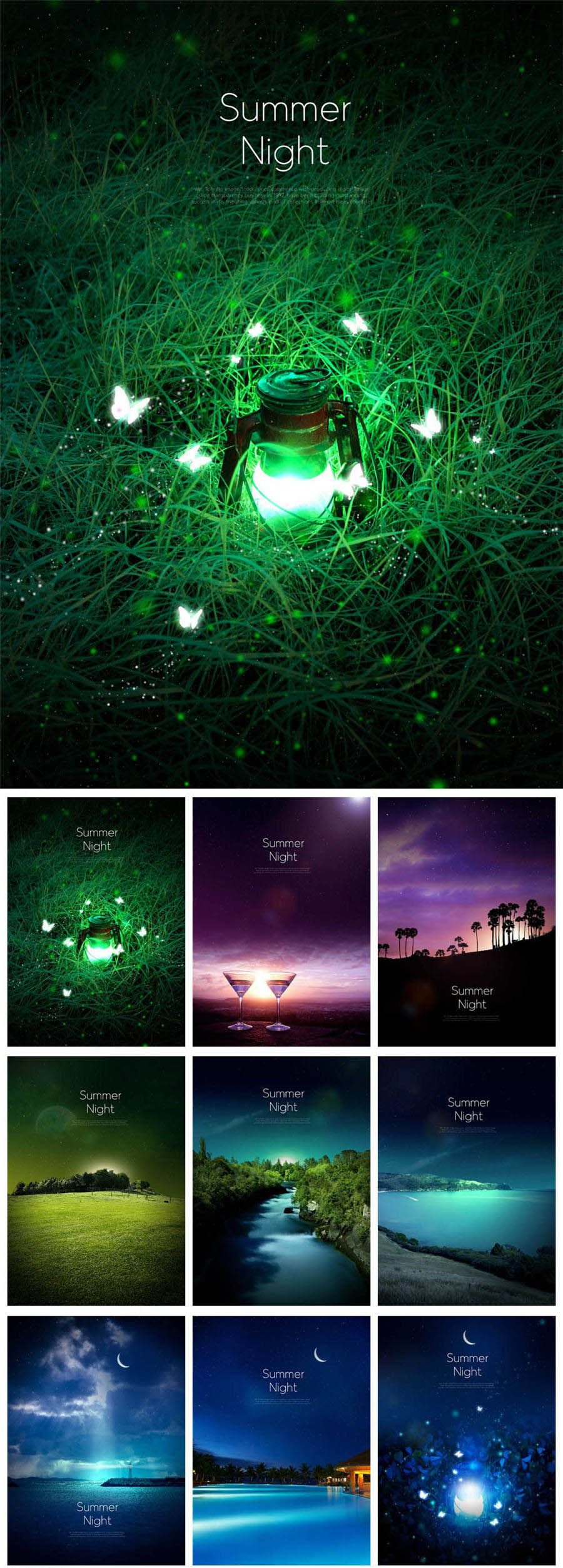 9款夜色夜景风景萤火虫PSD素材(背景已合成)
