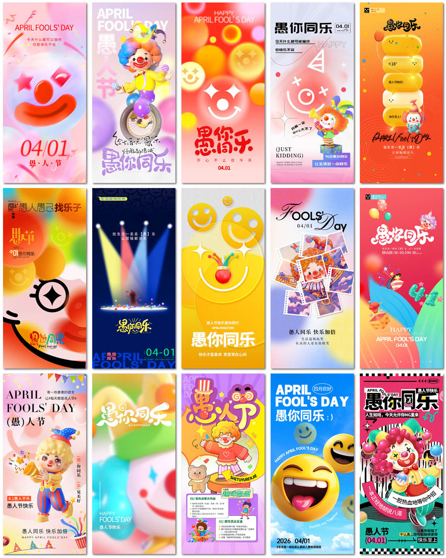 愚人节笑脸小丑气球礼物娱乐玩笑愚你同乐PSD海报设计元素材模板