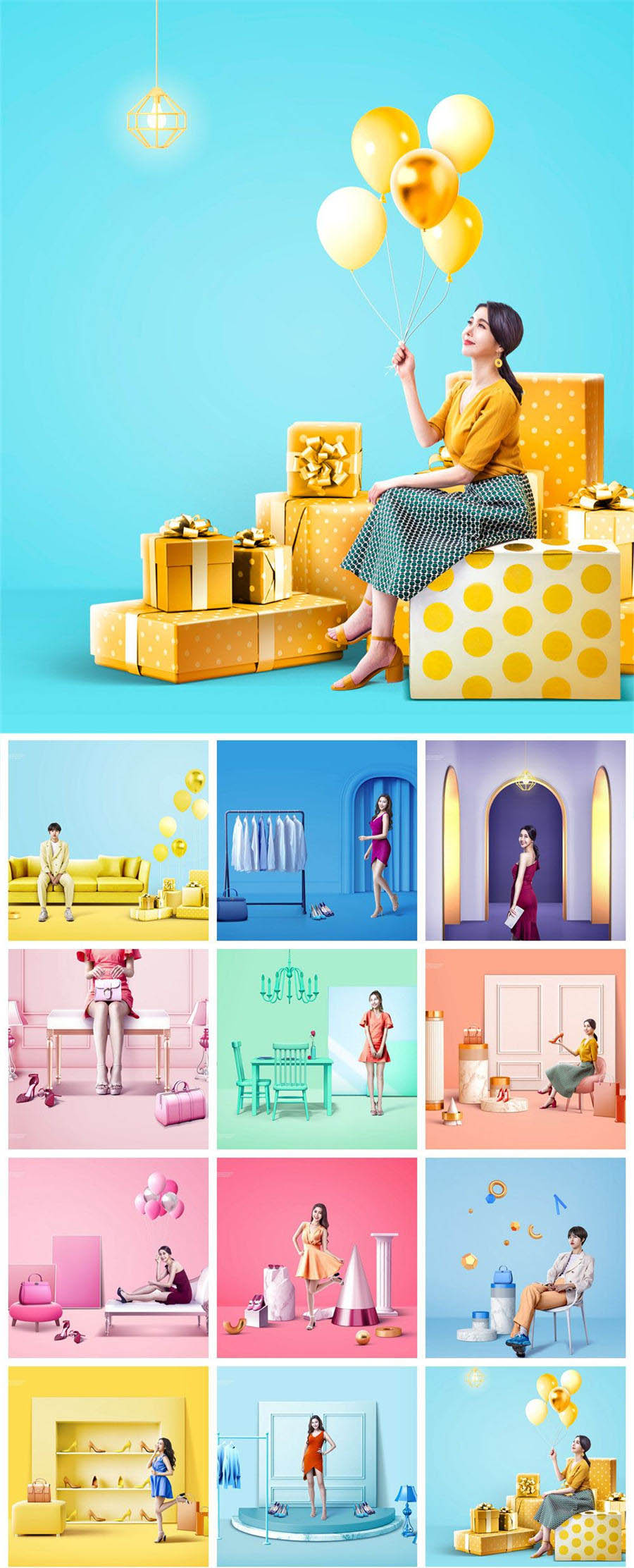 电商购物促销活动橱窗展台礼物鞋包创意元素海报模板PSD素材设计