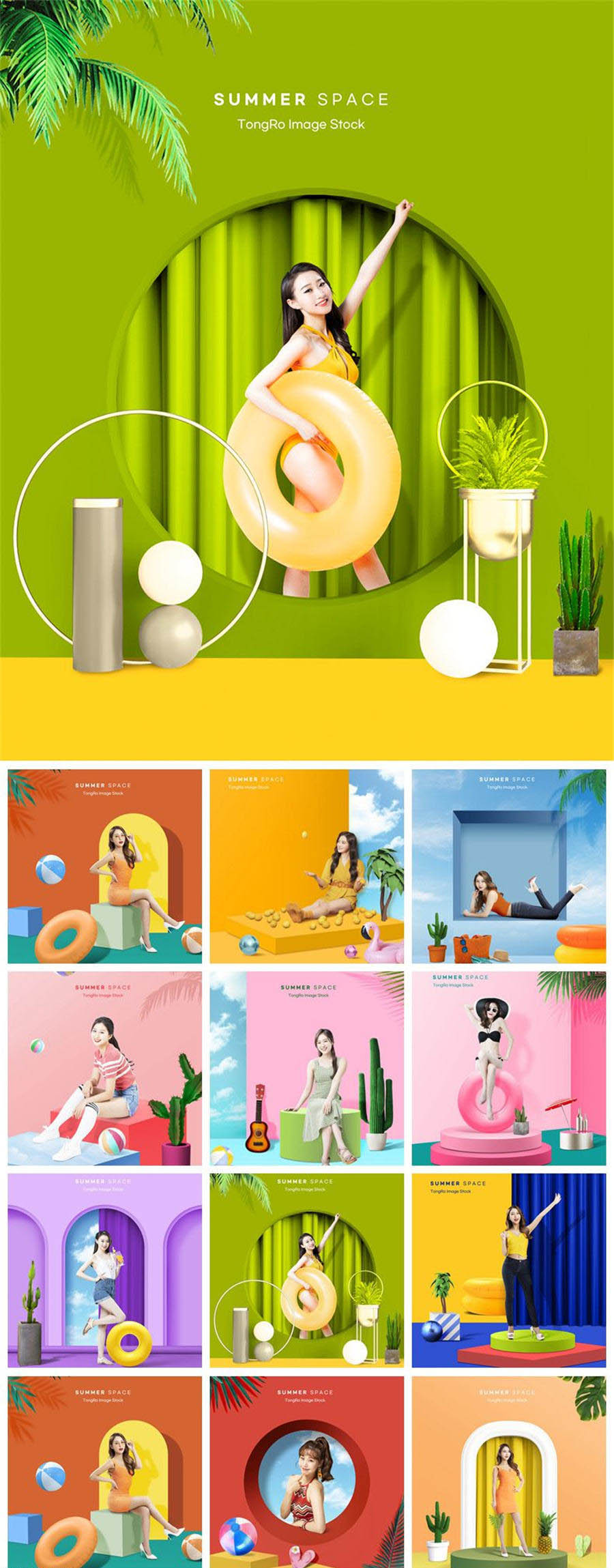 夏日泳池旅游度假橱窗展台购物促销创意PSD元素海报模板素材设计