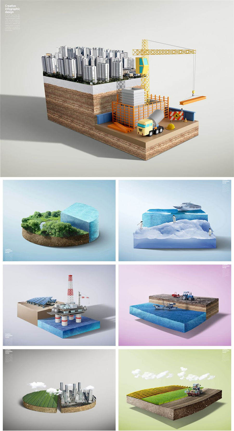 7款城市农业建筑工程新能源创意合成立体场景-1PSD素材