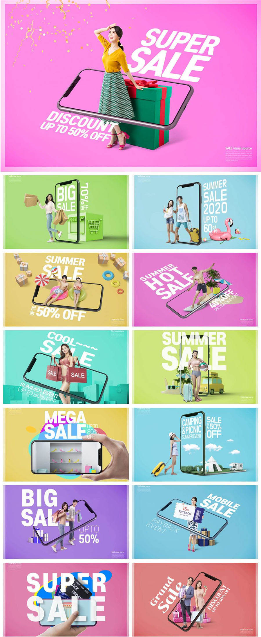 手机电商购物旅游独家旅行橱窗鞋衣创意元素海报PSD模板素材设计