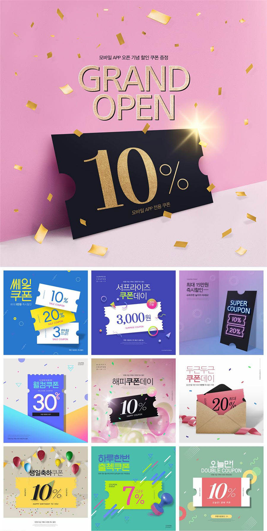 电商购物活动会员促销优惠券折扣卡创意元素海报PSD模板素材设计