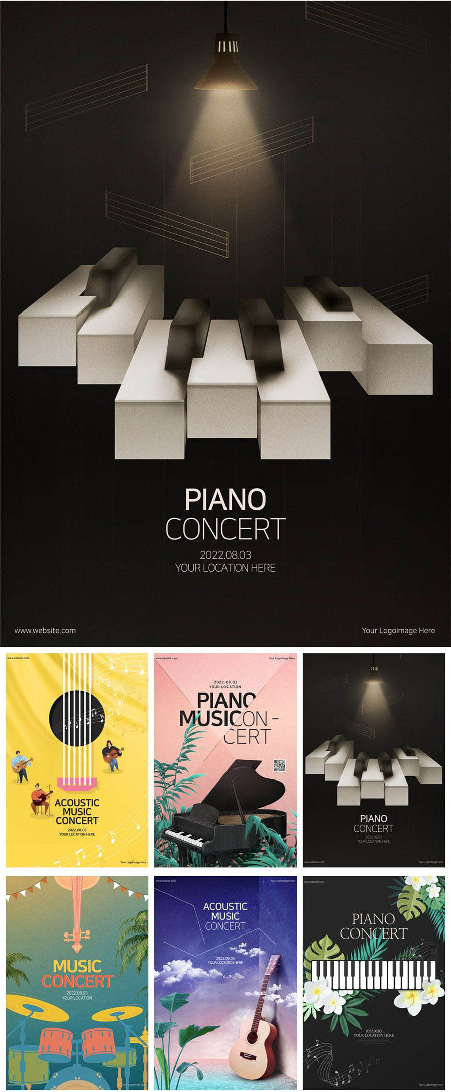 音乐钢琴乐器吉他摇滚演唱会音乐节创意元素海报模板素材PSD设计