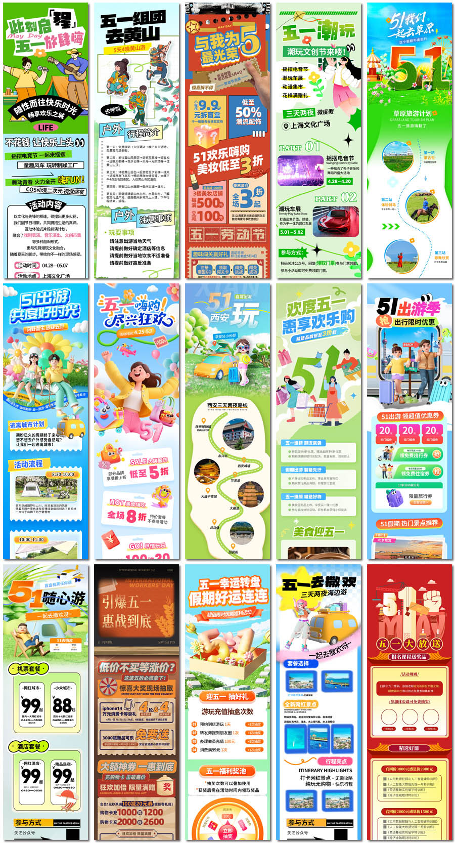 劳动节活动旅游工人电商节日手机营销长图PSD海报设计元素材模板