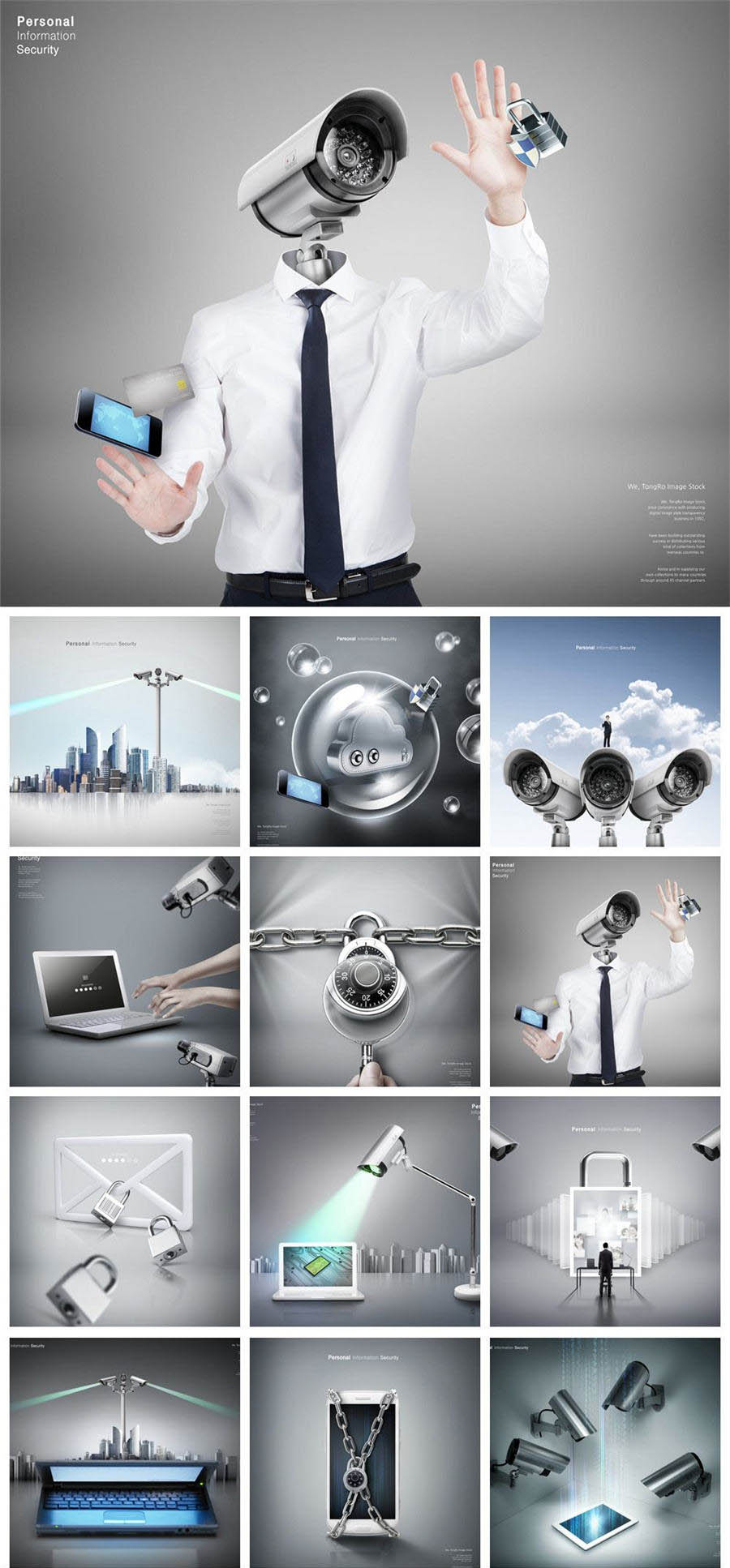 网络安全监控摄像头偷窥隐私科技创意元素海报PSD模板素材设计