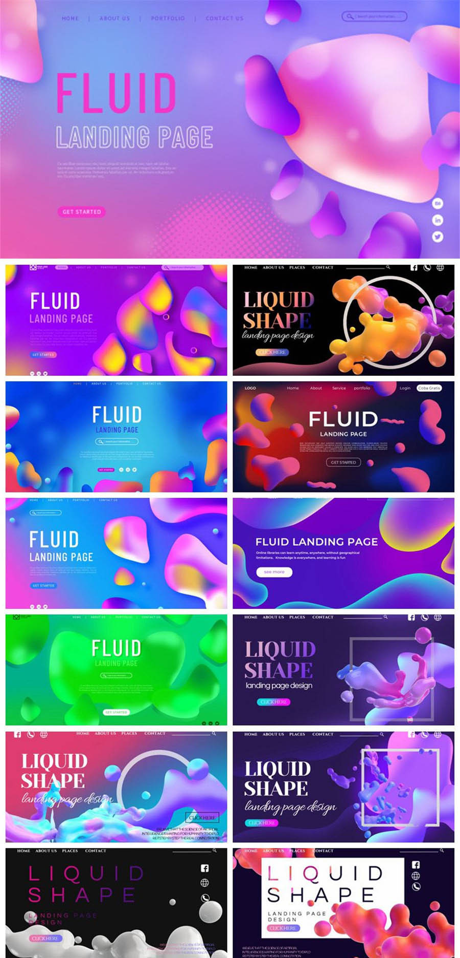 13款炫彩抽象渐变流体主视觉KV海报展板背景-1PSD素材