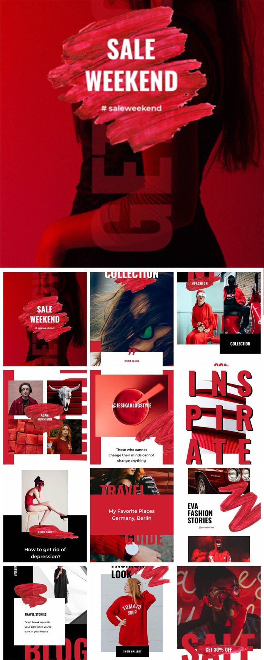 红色酷炫电商艺术抽象杂志人物排版创意PSD元素海报模板素材设计