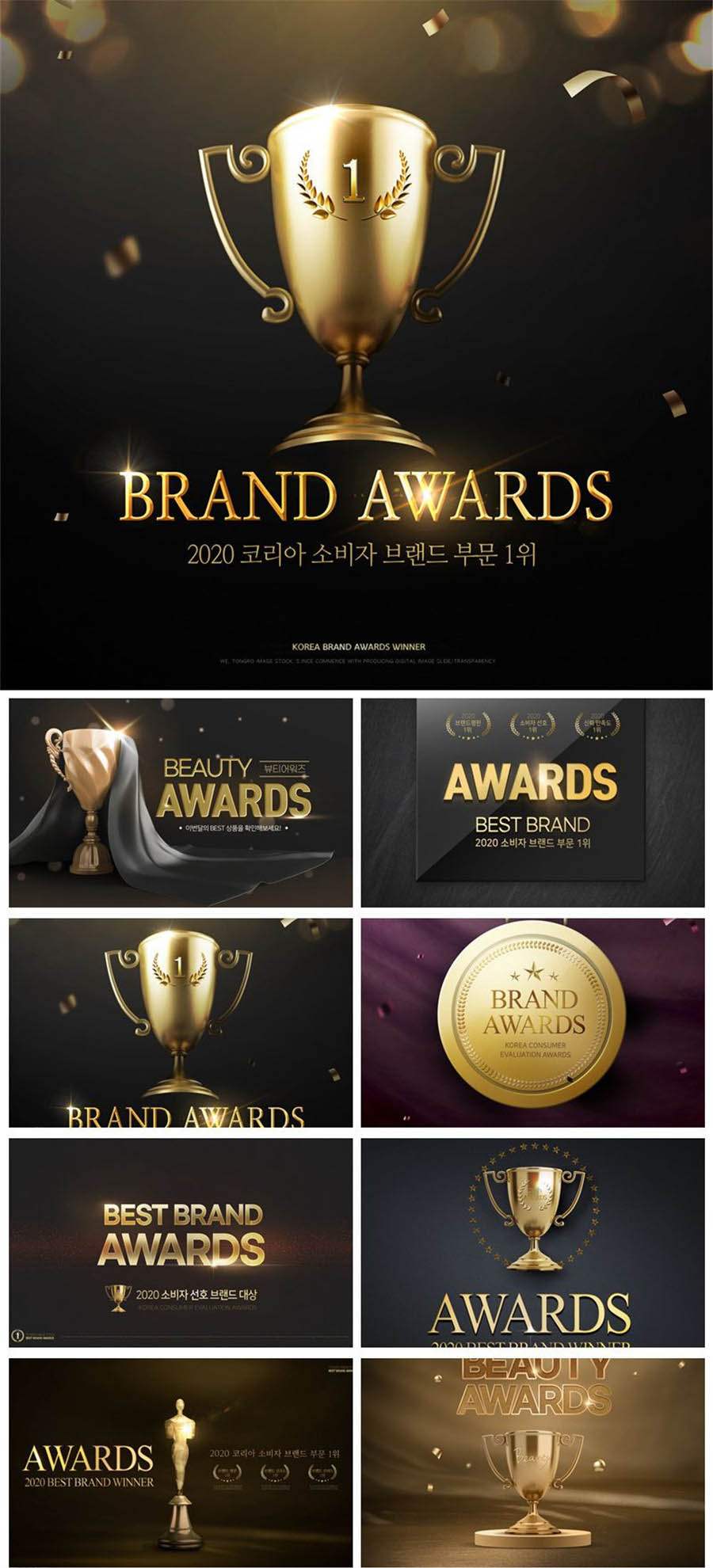 奖杯奖牌冠军荣誉第一名颁奖典礼创意元素海报模板素材PSD设计