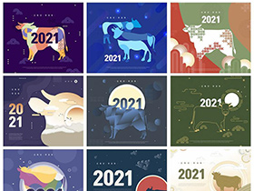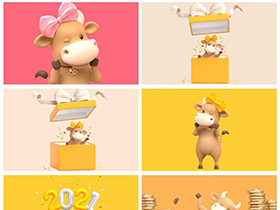 牛年卡通牛2021新年春节国风插图插画创意AI元素海报模板素材设计