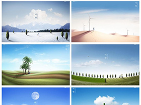 旅游风景色旅行大自然草原湖泊花海创意元素海报模板素材PSD设计