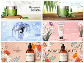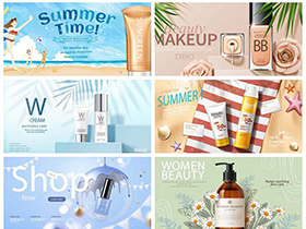 保养品化妆品护肤品美白防晒美妆美容创意元素海报AI模板素材设计
