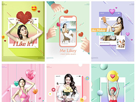 网红直播社交点赞阅读娱乐运动旅游创意元素海报模板素材PSD设计