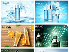 美妆护肤品化妆品水果植物精华水花创意AI元素海报模板素材设计