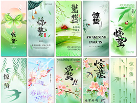 惊蛰春雨惊雷闪电瓢虫竹子春季二十四节气PSD海报设计元素材模板