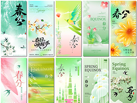 春分燕子花朵蝴蝶踏青树枝春季二十四节气PSD海报设计元素材模板