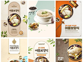 餐饮美食鲍鱼海鲜煲鸡汤面韩国料理创意元素海报PSD模板素材设计