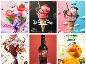 酸奶冰淇淋汽水果汁奶茶咖啡饮料奶昔创意元素AI海报模板素材设计