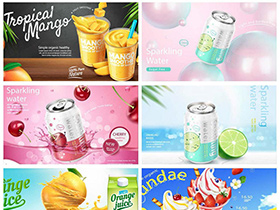 果汁酸奶咖啡可乐啤酒饮料冷饮橘橙汁创意元素海报模板素材AI设计