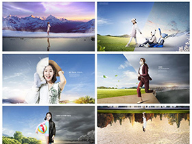 商务人物工作休闲旅游季节环境对比创意元素海报模板素材PSD设计