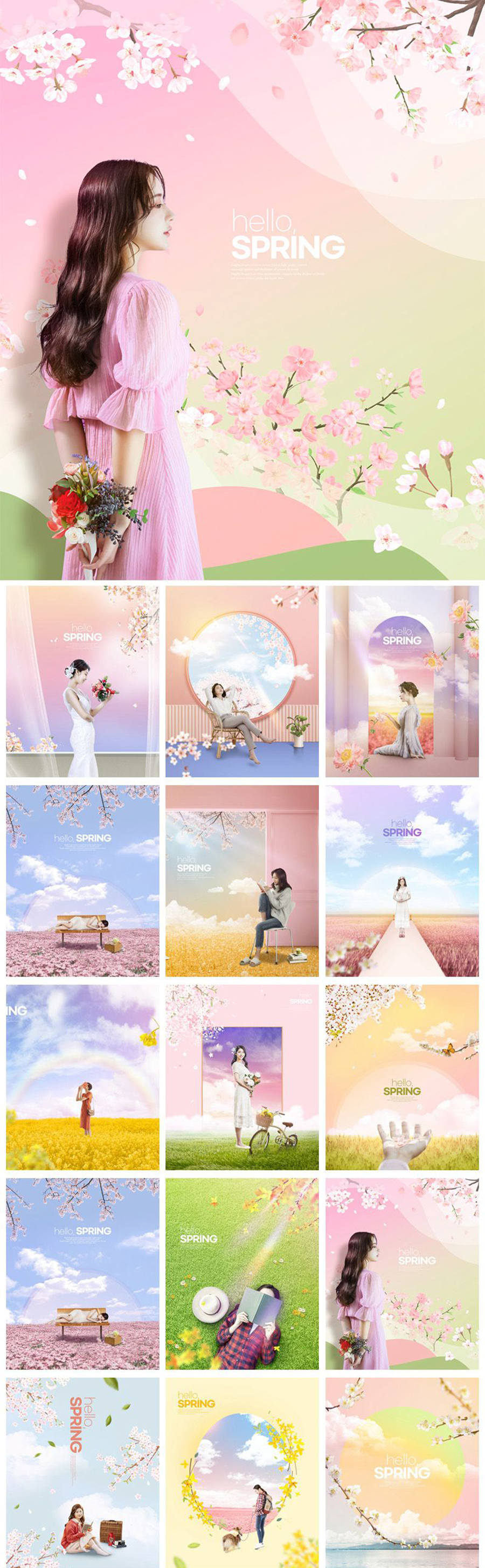 春天场景花朵植物樱花旅游踏青风景创意元素海报模板PSD素材设计