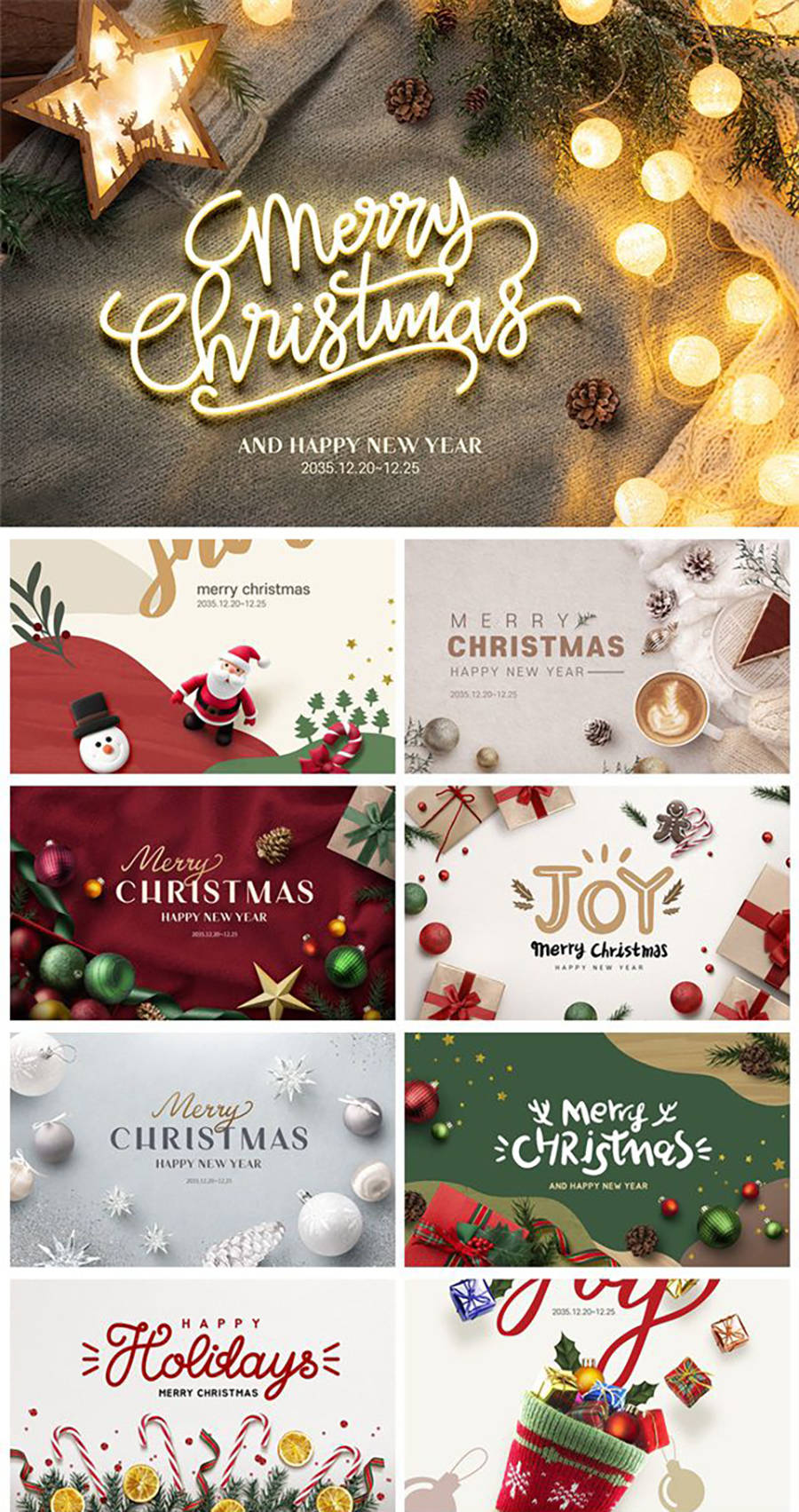 圣诞节购物活动促销礼物彩球展板创意元素PSD海报模板素材设计