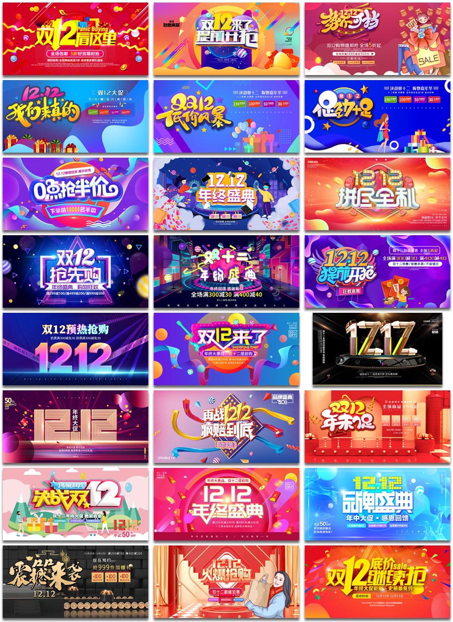 双十二12双11十一618购物节背景展板PSD横版海报设计元素材模板
