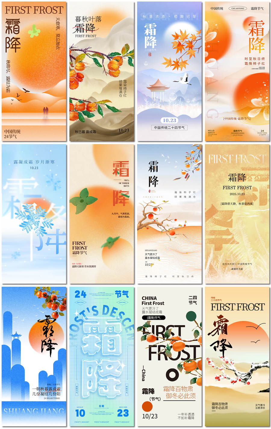 霜降时节秋日10月你好十月秋天秋季24节气PSD海报设计元素材模板