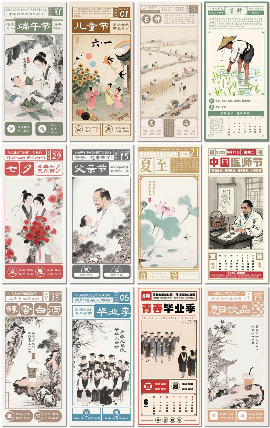 万年历风节日活动节气美食新品日历传统PSD海报设计元素材模板