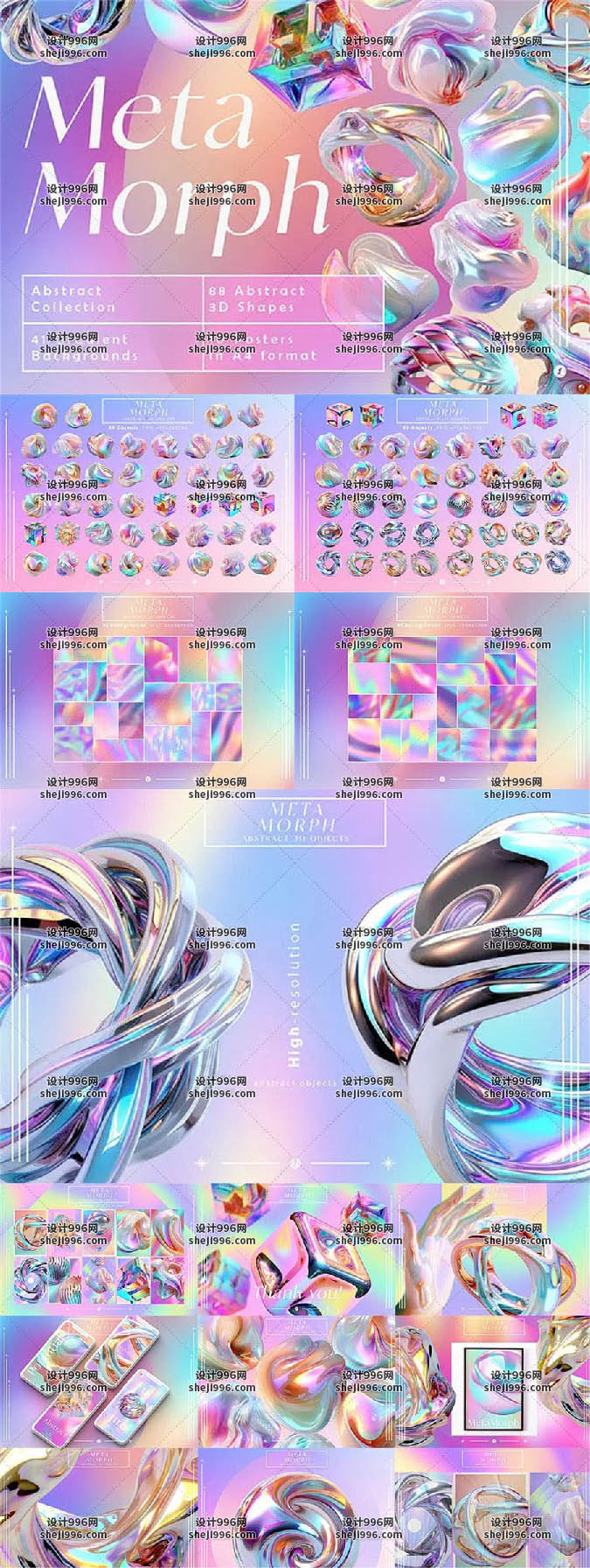88款3D立体抽象艺术全息虹彩图形PNG格式