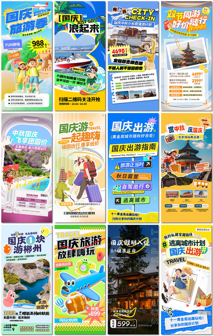 旅游旅行黄金周机票国庆出行节假日出游季PSD海报设计元素材模板