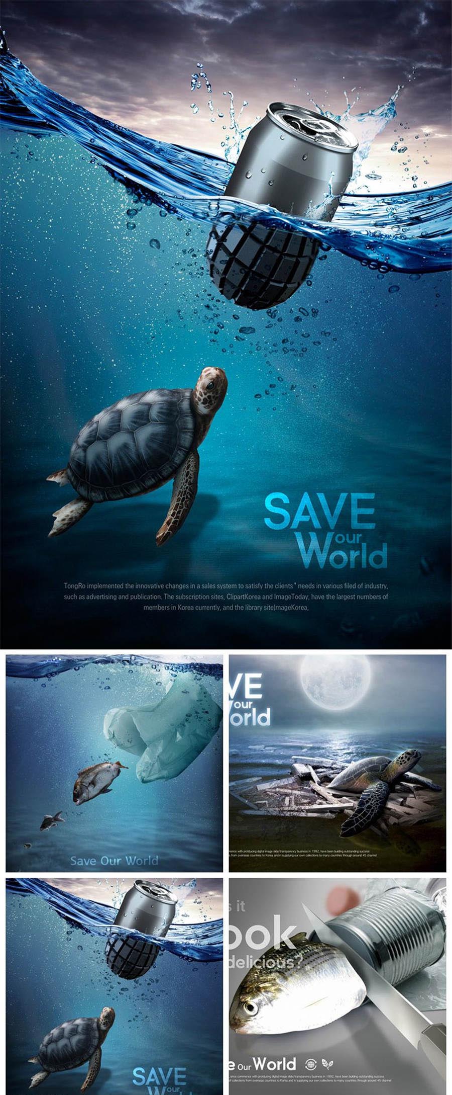 保护海洋日生物生态环境地球环保创意元素PSD海报模板素材设计