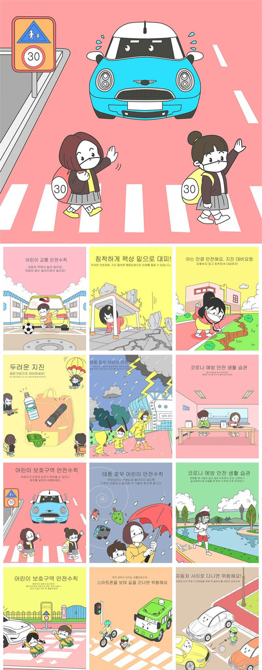 儿童安全教育过斑马线交通安全插画创意元素海报模板AI素材设计
