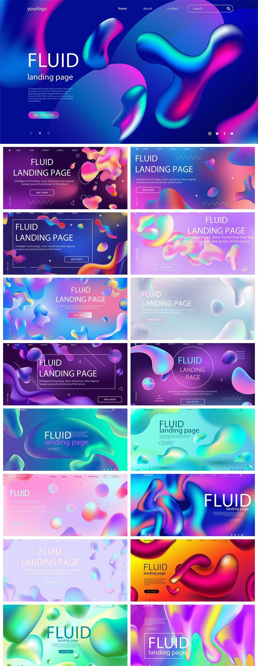 22张时尚炫彩渐变色彩流体彩虹糖果色系背景矢量纹理vi印花素材模板