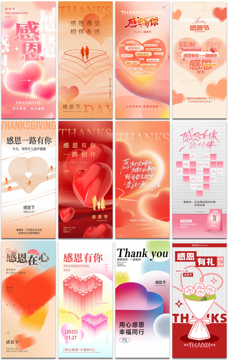感恩节爱心感谢有你感恩回馈活动花卉电商PSD海报设计元素材模板