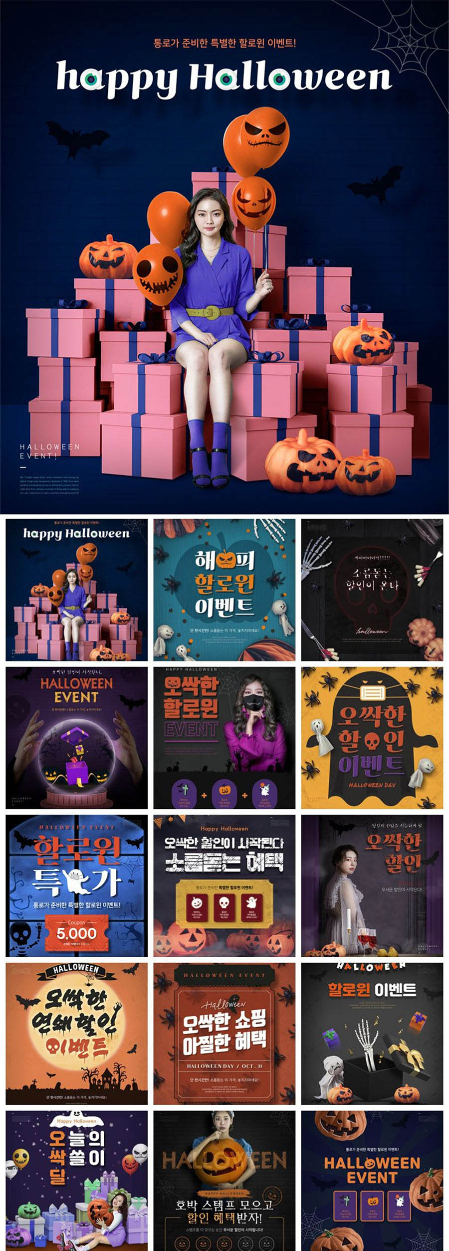 万圣节购物活动鬼怪场景幽灵南瓜创意PSD元素海报模板素材设计