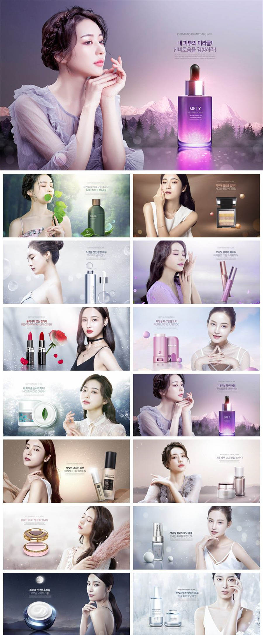 美妆化妆品保养护肤品美白口红补水创意元素海报模板PSD素材设计