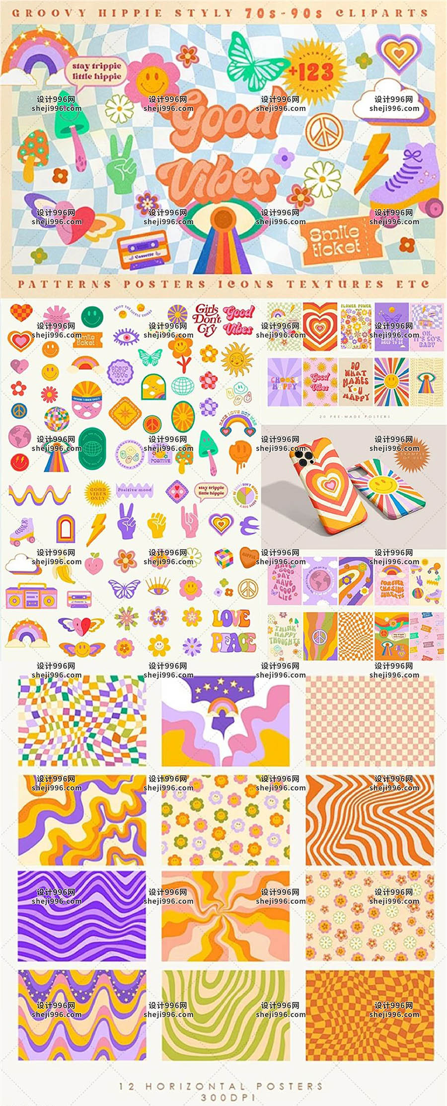 一套欧美复古抽象图形背景AI格式