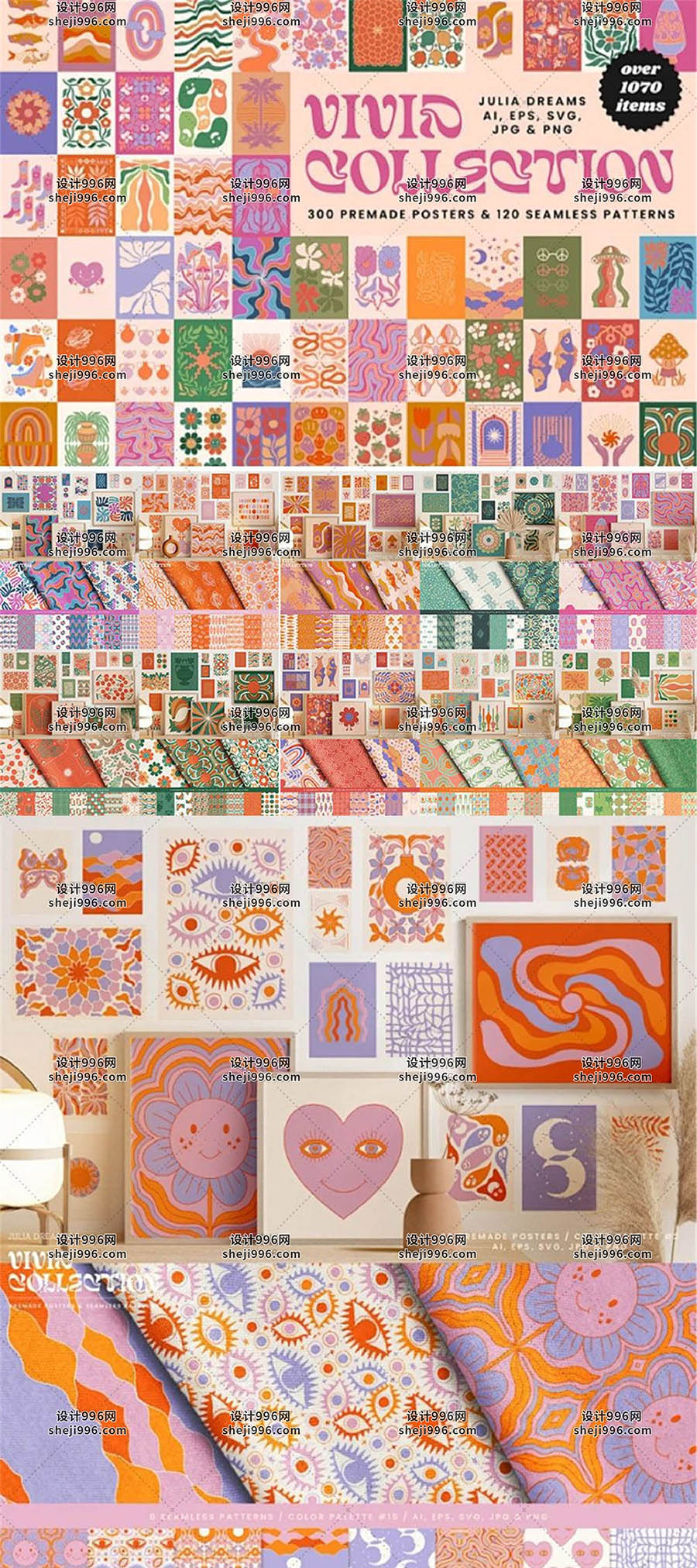 复古潮流酸性艺术抽象野兽风图案背景创意元素海报模板AI素材设计