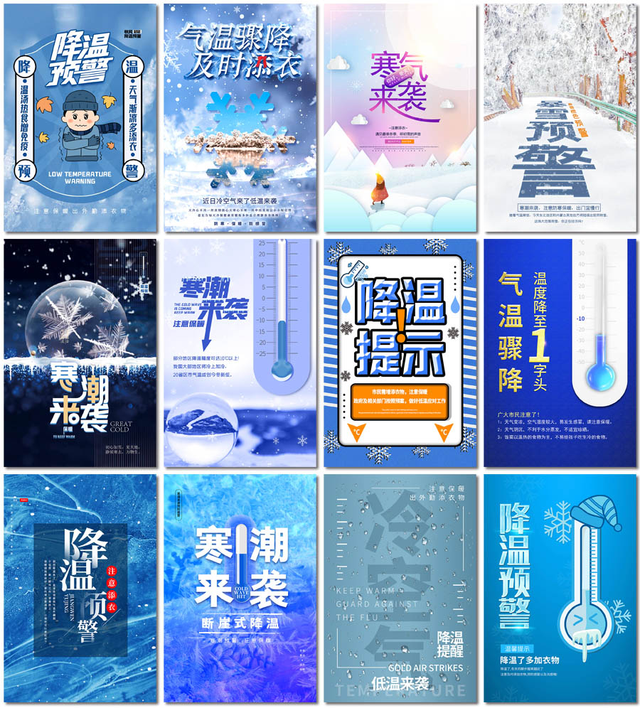 100张冷空气海报PS格式模板素材设计
