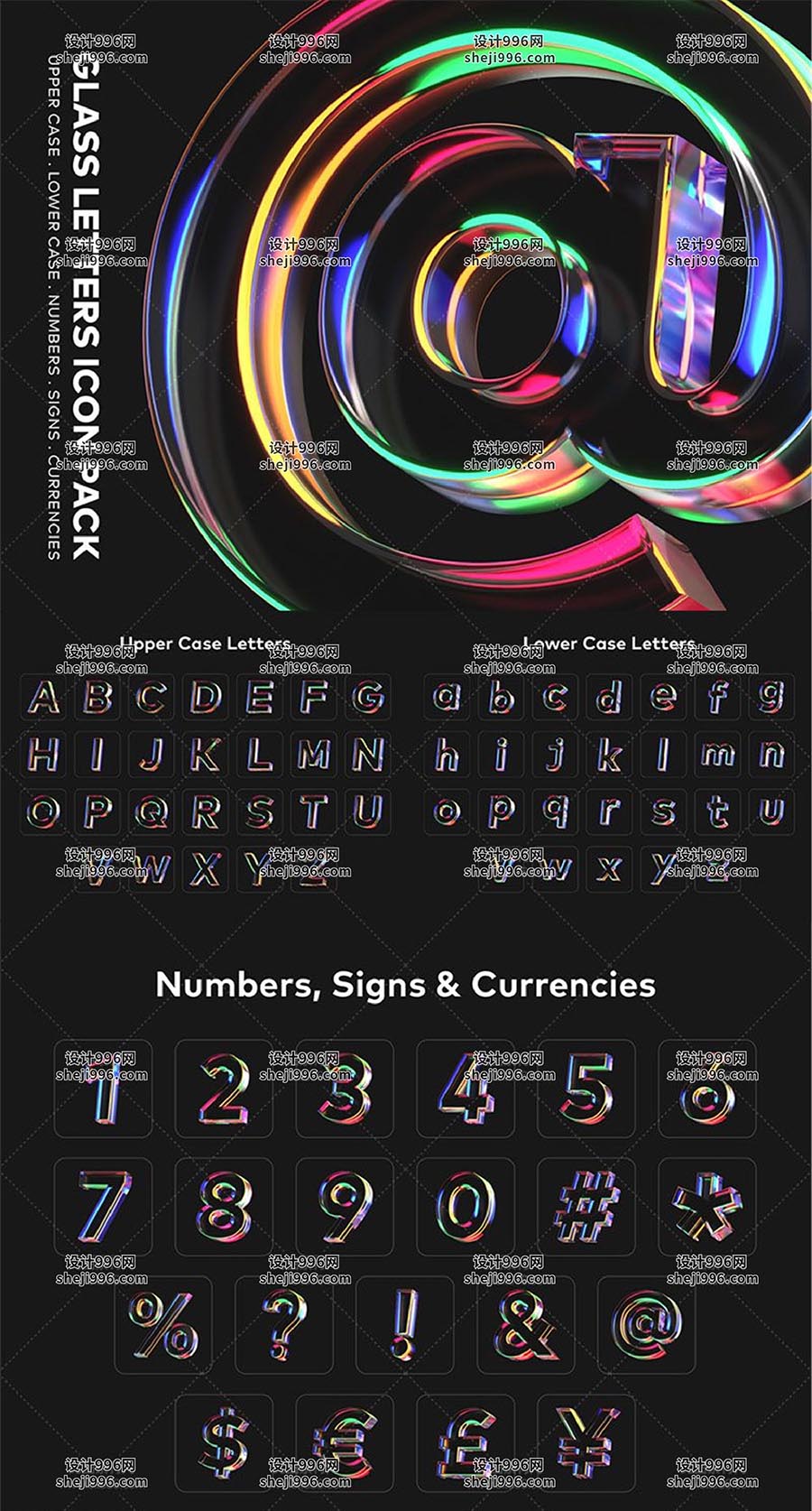 霓虹灯荧光立体水晶玻璃字母数字创意元素PNG海报模板素材设计