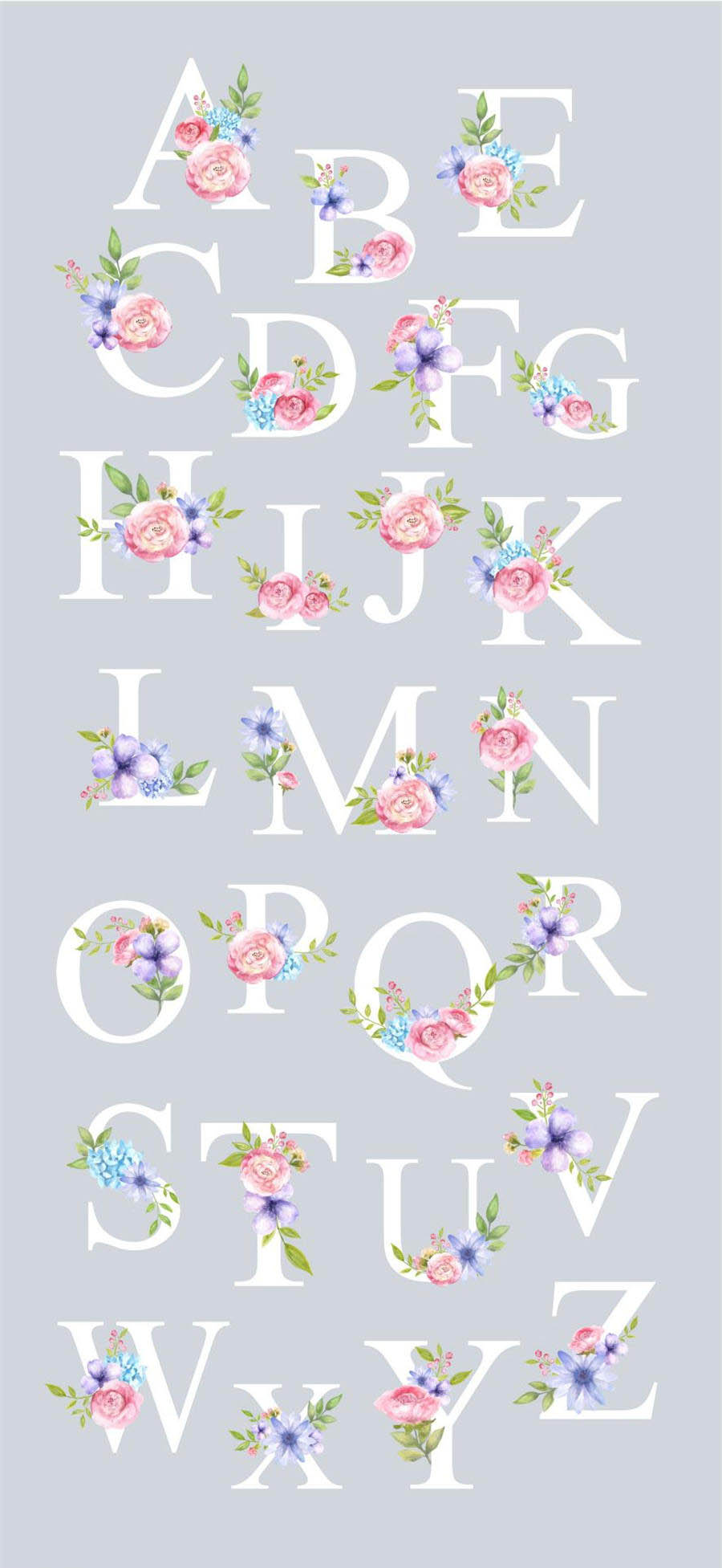 花边英文字母森系花朵花卉婚礼植物创意元素海报模板PSD素材设计