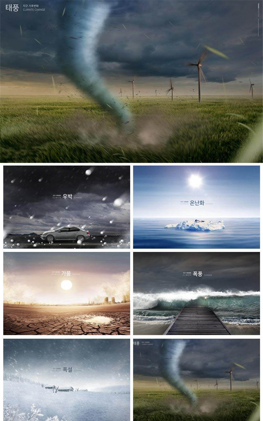 6款自然灾害洪水龙卷风干旱保护环境PSD素材